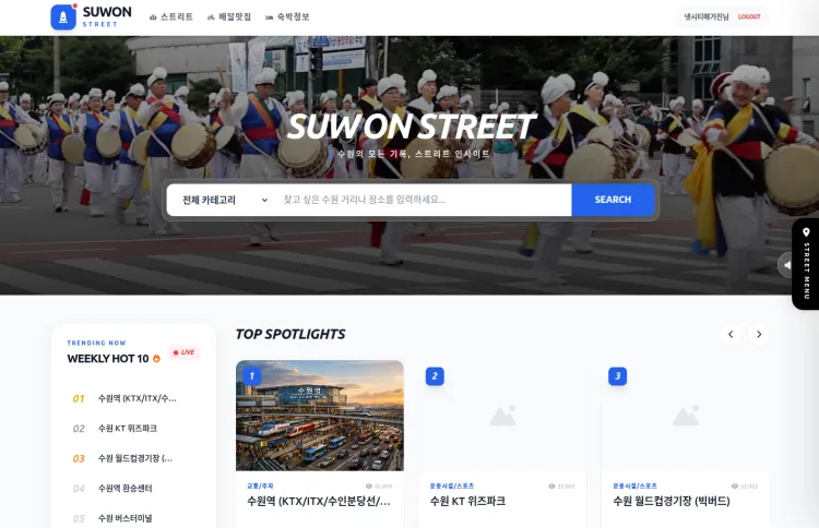 특히 눈길을 끄는 지점은 플랫폼의 독립성이다. 대형 플랫폼의 API에 전적으로 의존하는 대신, 자체적인 PHP/MariaDB 기반의 아키텍처를 구축하여 데이터의 주권(Data Sovereignty)을 확보했다. 이는 외부 환경의 변화에 휘둘리지 않고 수원의 데이터를 영구적으로 보존하겠다는 개발진의 의지가 반영된 결과다. ‘수원 스트리트’는 현재 실시간 인기 핫플 TOP 5, 방문자들의 시네마틱 리뷰 등을 통해 살아있는 지역 정보를 실시간으로 송출하며 수원 시민들의 새로운 소통 창구로 급부상하고 있다.