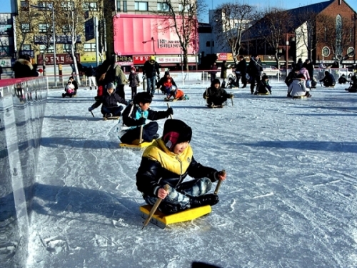 연일 영하10도를 넘나드는 쌀쌀한 기온을 보이는 지난 22일, 예년보다 추위가 빨리 시작되었던 관계로 당초 계획보다 이른 시기에 행궁광장 옆에는 82㎡ 크기의 얼음썰매장이 개장됐다.