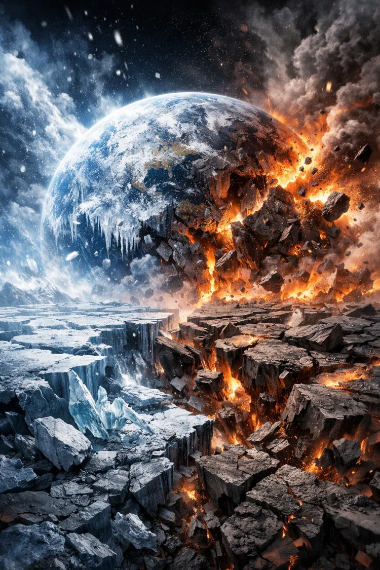 물질은 온도와 압력의 변화에 따라 그 물리적 성질이 상이하게 변합니다. 지구가 극한의 냉각 상태에 진입하여 '얼어붙기' 시작하면, 단순히 표면의 온도가 낮아지는 것에 그치지 않고 행성 내부 구성 물질들의 연쇄적인 '상변이'가 발생하게 됩니다. 암석과 금속으로 이루어진 지구의 골격이 초저온 상태에서 결정 구조의 재배치를 겪게 되면, 부피의 급격한 수축과 팽창이 동시다발적으로 일어나며 행성 전체의 물리적 결합력을 약화시킵니다.